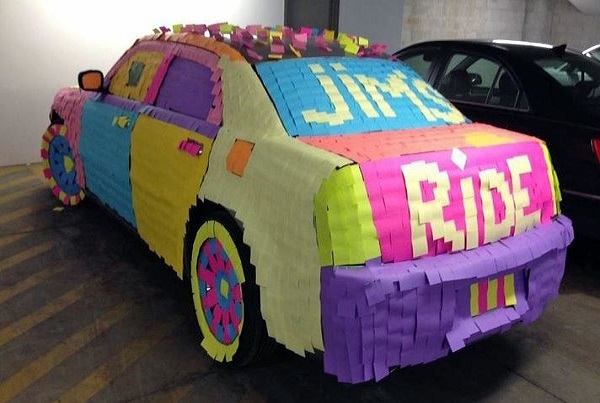 把五顏六色的便利貼貼滿整輛車,我很好奇車子的主人到底是有多放飛自我XD