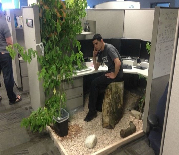 當你人在辦公室卻想要親近綠色的大自然,那該怎麼辦?我的同事就做出了最完美的示範。
